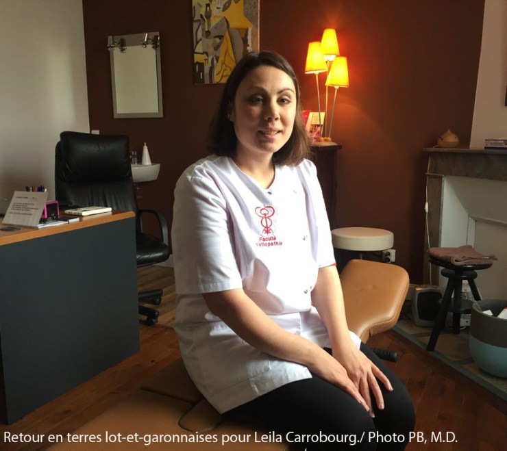 Après ses 6 années d’études à la Faculté d’étiopathie de Paris, la jeune Leila Carrobourg n’a pas hésité à quitter la capitale et sa pollution pour revenir sur ses terres d’enfance. Issue, du côté maternel, d’une famille du Villeneuvois, la jeune femme passait ses vacances dans les vergers de notre département où sa grand-mère, Mme Loubet, était aide-soignante.