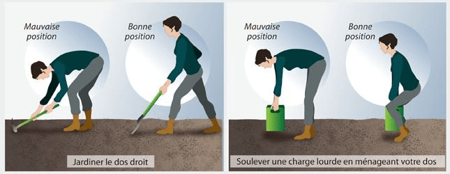 Gardez le dos droit , évitez les torsions, respectez l’axe, tête, cou, tronc.